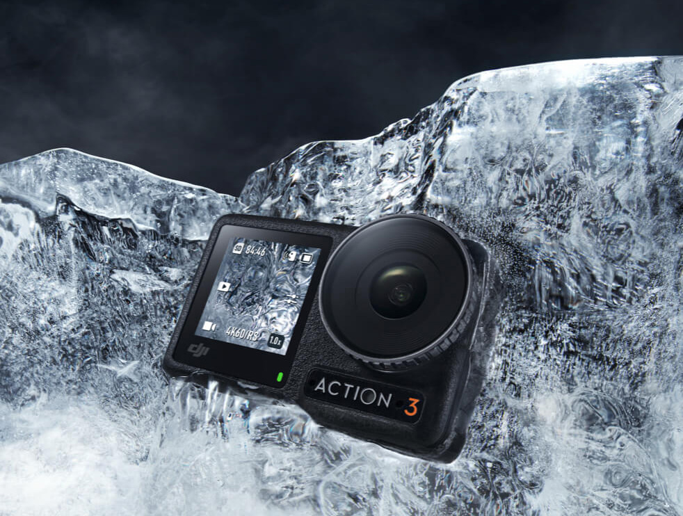 Osmo Action 3 поддерживает съемку в условиях низких температур до -20°C и является водонепроницаемой до 16 метров без дополнительной защиты. Аккумулятор Extreme Battery позволяет снимать до 160 минут видео, а также поддерживает быструю зарядку - до 80% за 18 минут.