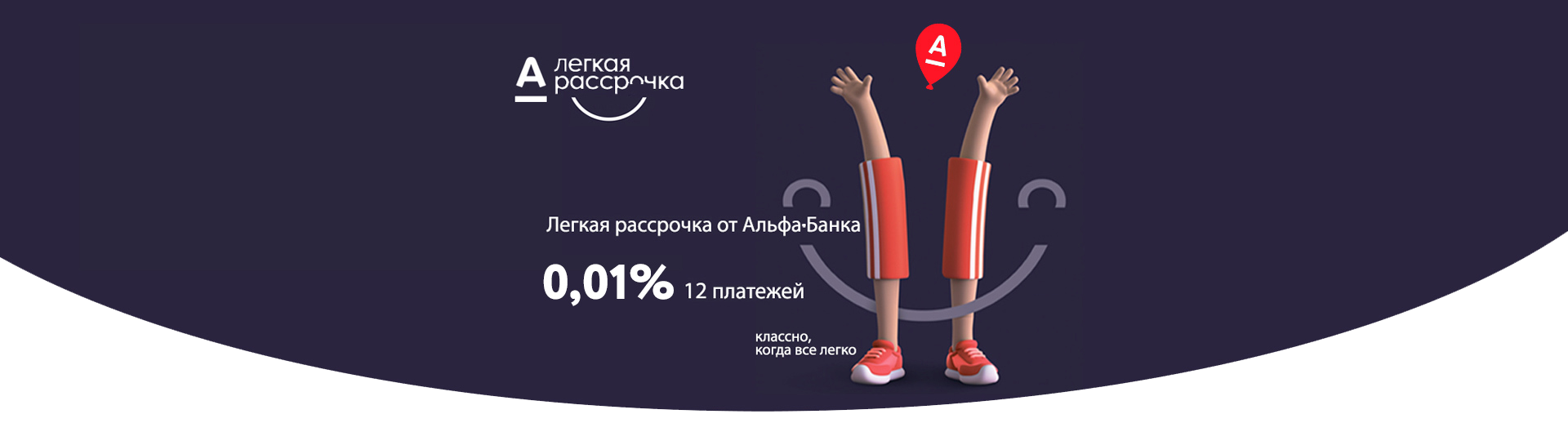 Это удобный и простой способ приобретения товаров на 3, 6 или даже 12 платежей. Ежемесячный платеж по рассрочке автоматически списывается с остатка суммы на кредитной карте. «Легкая рассрочка» предоставляется под 0,01% годовых без комиссий и переплат (при использовании кредитных средств, для внесения ежемесячного платежа, взымается комиссия согласно договору по вашей кредитной карте, при необходимости уточните информацию у консультанта Альфа-банка).